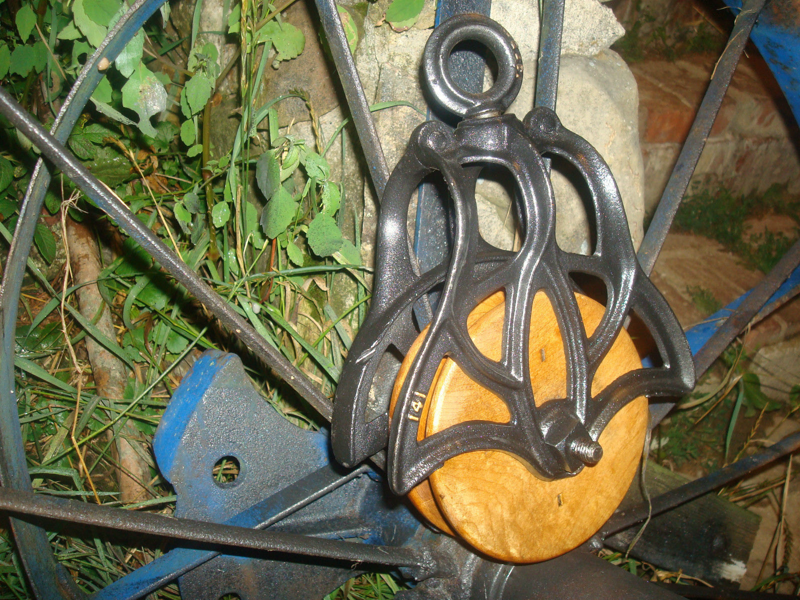 Antique Wood Triple Block 3 Wheel Pulley With Hook Farm Equipment Ebay